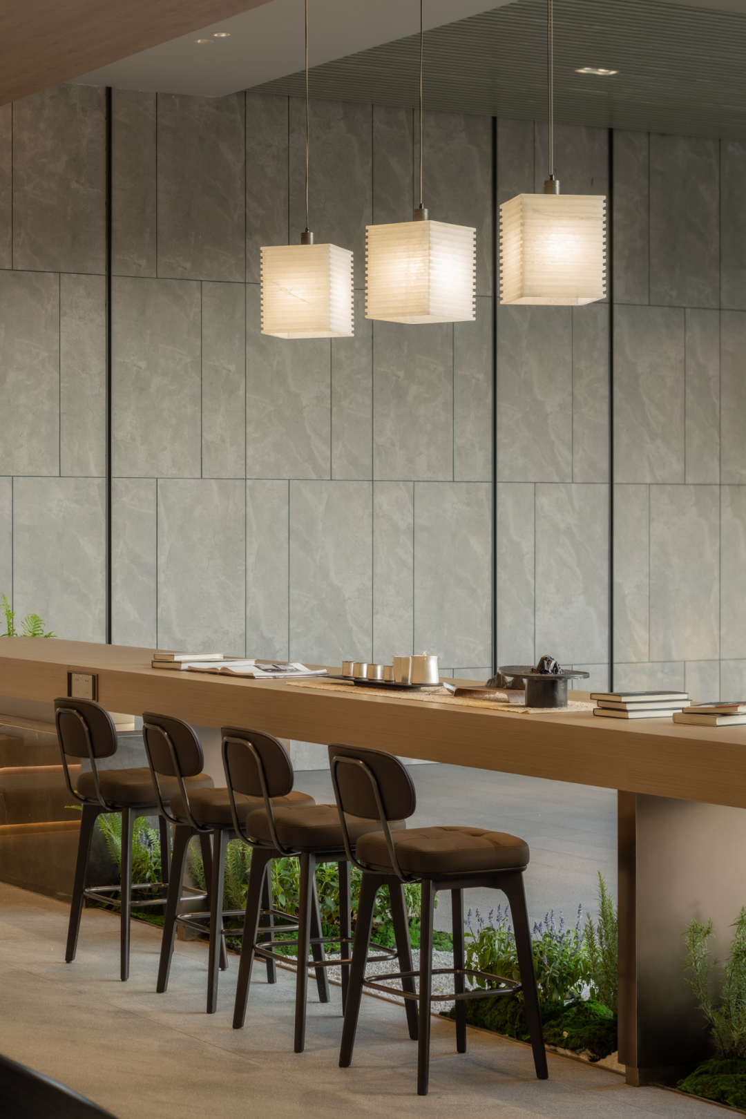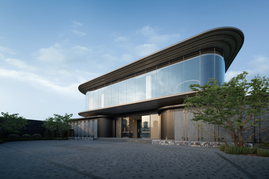 沿著庭院廊橋拾級而上,漫步在自然的院落中,建筑緩緩展現(xiàn)在我們眼前。暖暖的米色墻面搭配著高級灰,香檳金的金屬線條勾勒出建筑的輪廓,建筑上弧形的線條,入戶大堂弧形的玻璃讓我們忘記了鋼筋混凝土的堅硬,我們的心慢慢融入這個園區(qū),享受此刻的寧靜和諧。