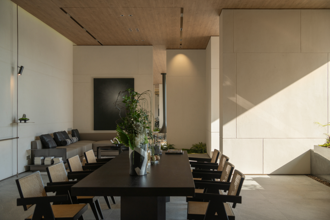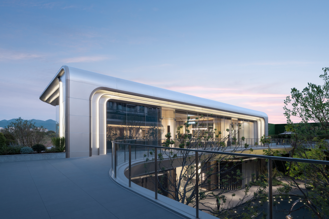 設(shè)計師以“隱”的設(shè)計手法貫穿整個體驗中心,提出“重構(gòu)天地”的設(shè)計理念,力圖打造出充滿文化內(nèi)涵的建筑展示空間?,F(xiàn)代寫意的建筑風(fēng)格,簡約大方,出檐深遠的金屬屋面,虛實變化的建筑立面,輕盈的步道連廊,在光影的變換下營造出淡雅,靜謐的院落氛圍。