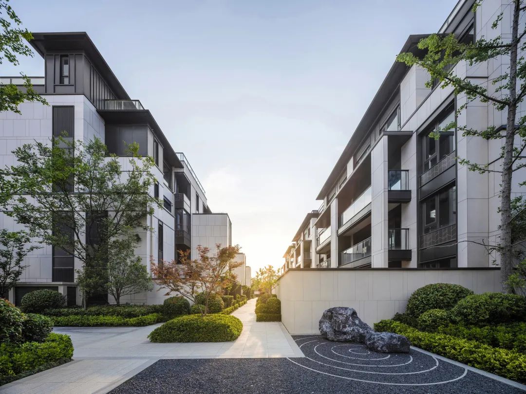 從建筑整體來(lái)看,太湖如院的新中式風(fēng)格既簡(jiǎn)約又不失時(shí)代厚重感,在細(xì)節(jié)設(shè)計(jì)上,不同于常規(guī)新中式往往采用繁瑣的紋飾雕花,而是在現(xiàn)代藝術(shù)設(shè)計(jì)語(yǔ)境下形成更為契合當(dāng)下審美的新中式,配合高端宜居的居住氛圍。