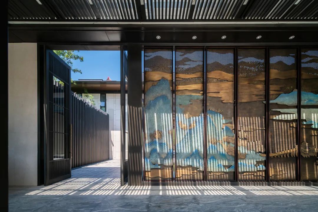 一進(jìn)以北宋王希孟的《千里江山圖》啟幕,青綠山水,氣勢(shì)恢弘,為中國(guó)十大傳世名畫之一。設(shè)計(jì)汲取傳統(tǒng)美學(xué),賦予現(xiàn)代審美的轉(zhuǎn)譯,將作品中獨(dú)特的藝術(shù)感提取,留其濃麗,增以典雅,隔開城市的喧囂。
