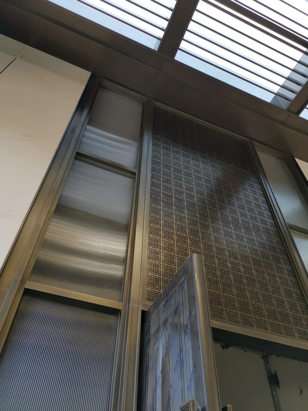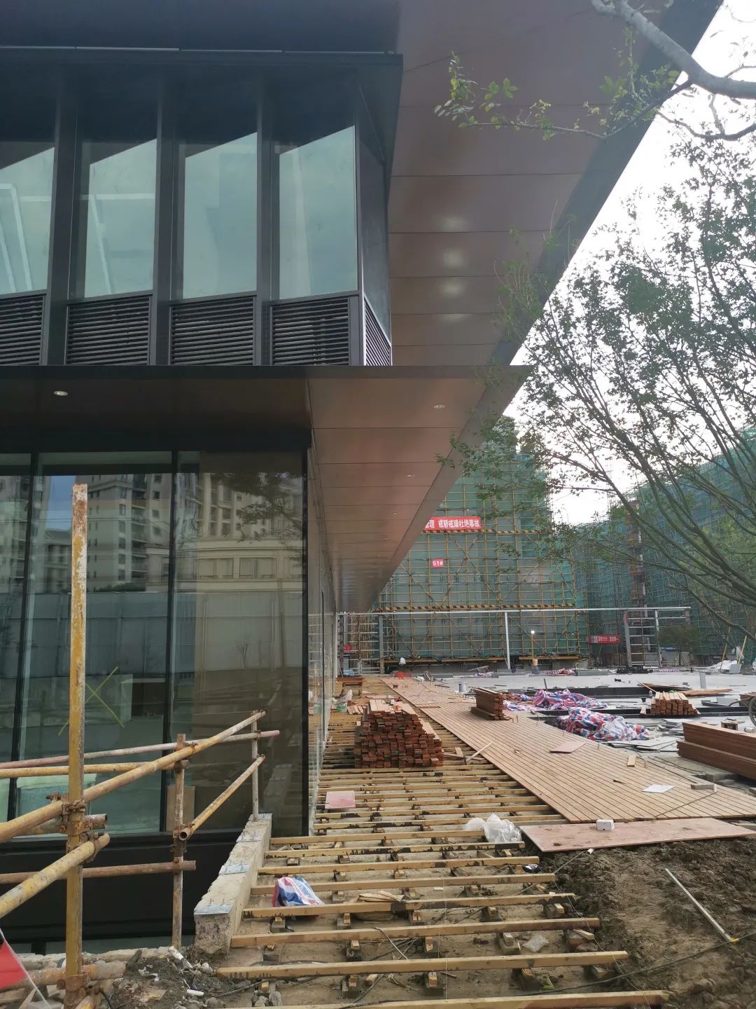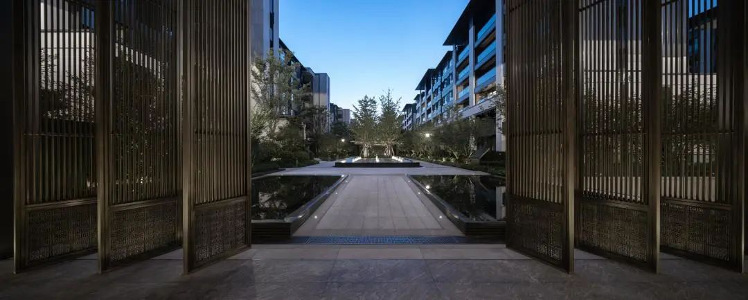 如入境“府院”區(qū)域建筑立面貼磚未采用常規(guī)橫向的方式,而是采用了竹節(jié)式的拼貼,與色澤古雅的古銅色金屬構(gòu)架和不銹鋼拉絲面相配,輔以LED黃色柔性燈帶,呈現(xiàn)匠心精筑的美好人居。雖棄繁就簡(jiǎn),亦不忘琢磨細(xì)節(jié)。