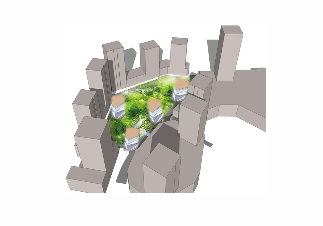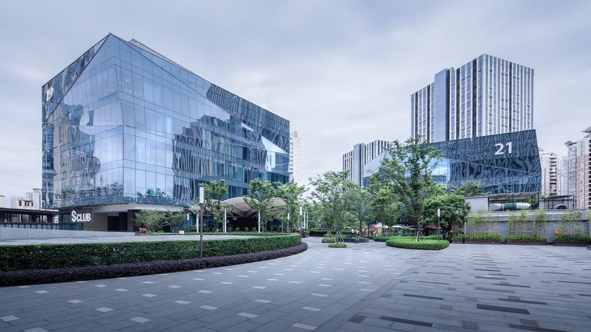 四個(gè)冰晶盒子將商業(yè)設(shè)備設(shè)置在屋頂,從高處俯瞰無一不是一處城中花園。裙樓屋頂花園的設(shè)計(jì),不僅美化了整個(gè)商業(yè)立面形象,還形成了第五個(gè)立面。