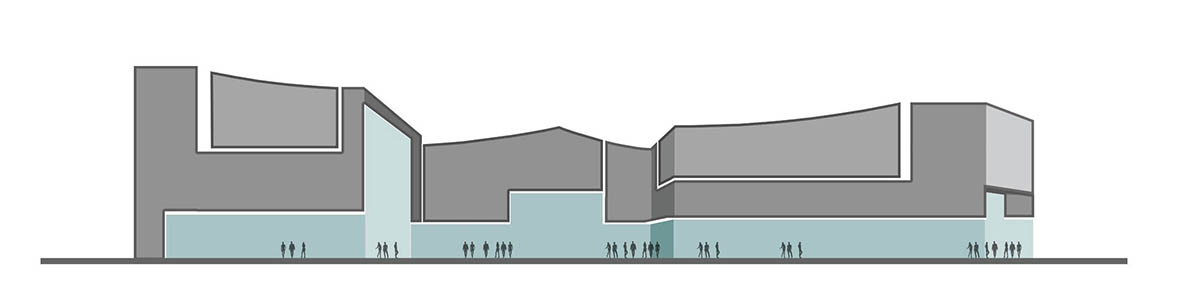在該案中,設(shè)計(jì)追求商業(yè)形象和城市文脈的統(tǒng)一,以營造一個(gè)充滿城市精神的活力場所。建筑通過大的虛實(shí)對比明確體量間的尺度關(guān)系,以首尾相接的弧線屋頂演繹傳統(tǒng)蘇式建筑文脈,塑造如太湖波浪般起伏的沿街立面形象。