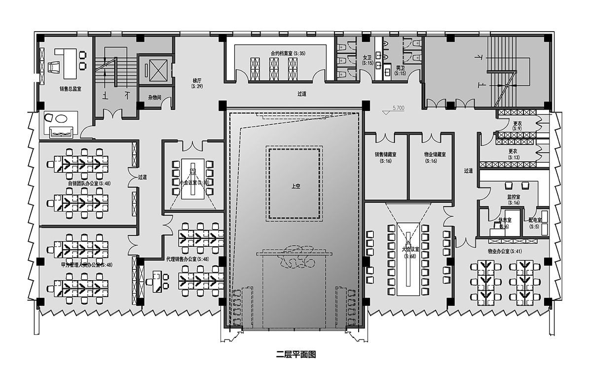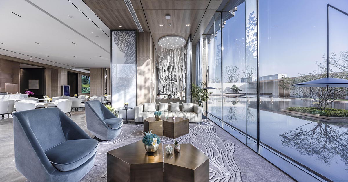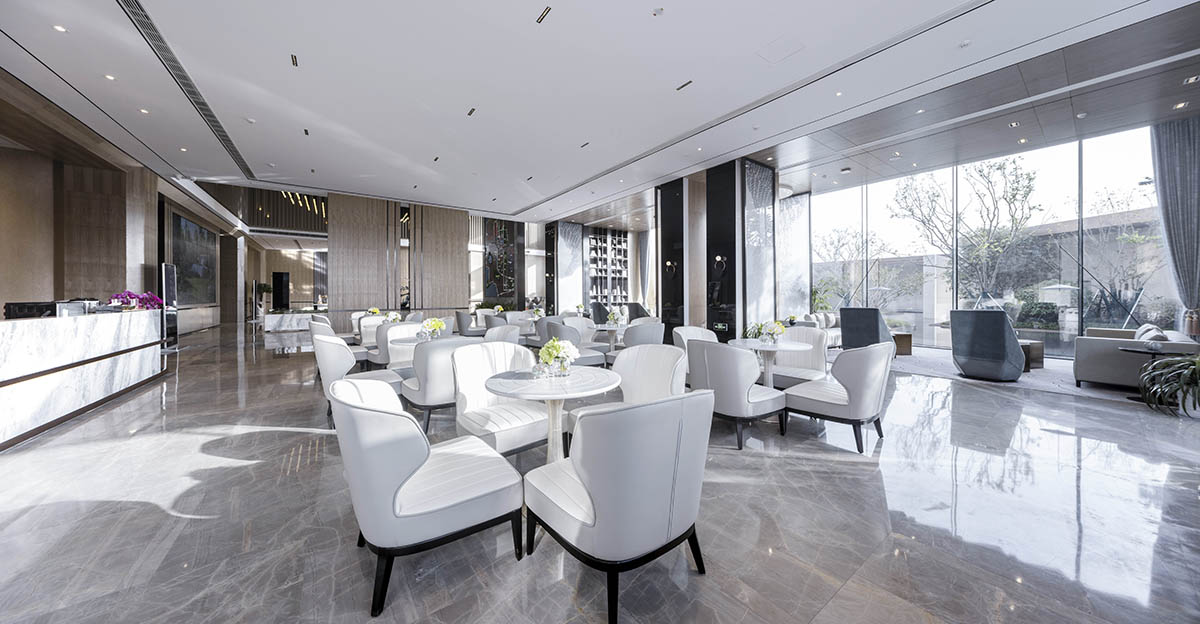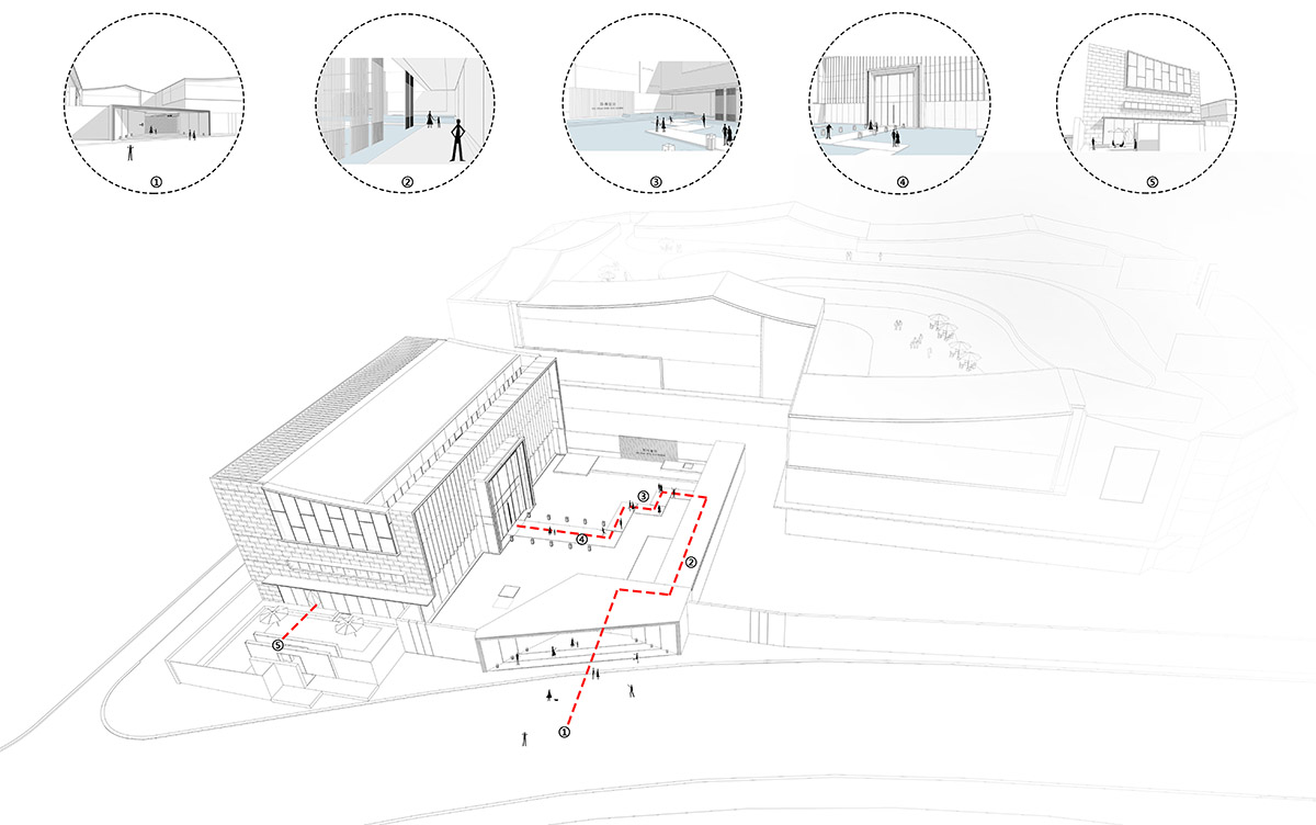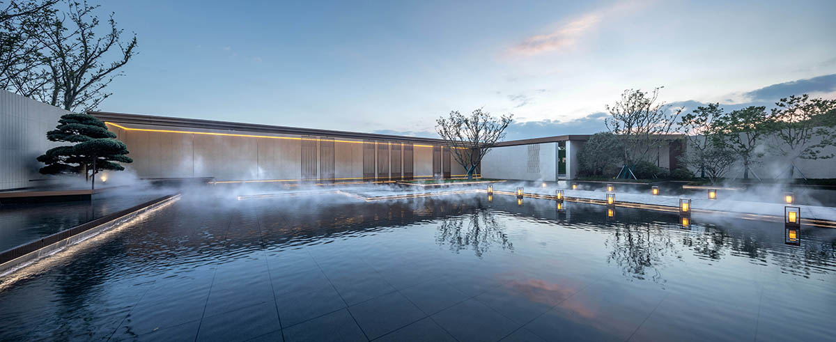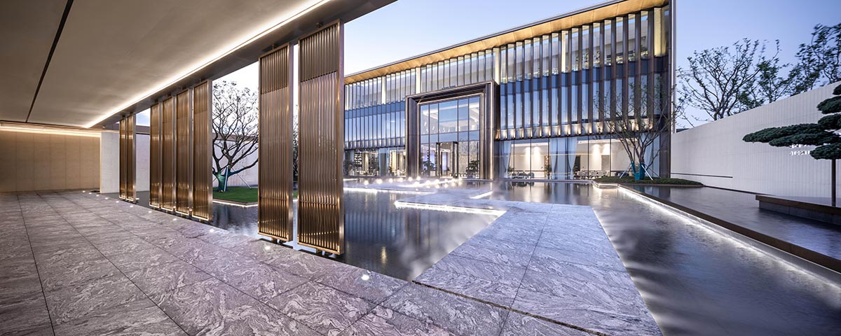 建筑前場空間較為局促,設(shè)計(jì)借鑒傳統(tǒng)蘇州園林的造園手法,采用起承轉(zhuǎn)合的路徑設(shè)置,拉長體驗(yàn)動(dòng)線,通過層層遞進(jìn)的五重空間放大整個(gè)示范區(qū)的場景感受。