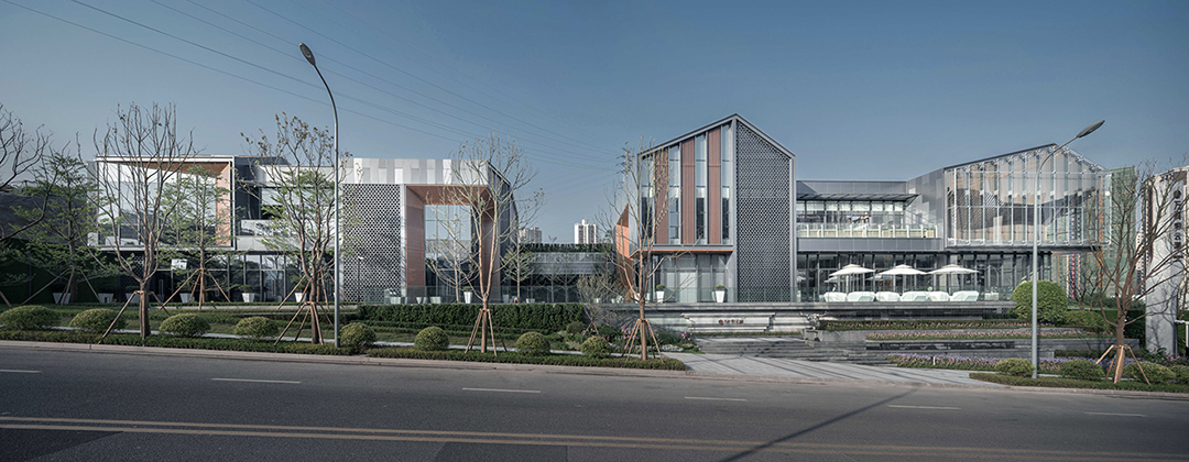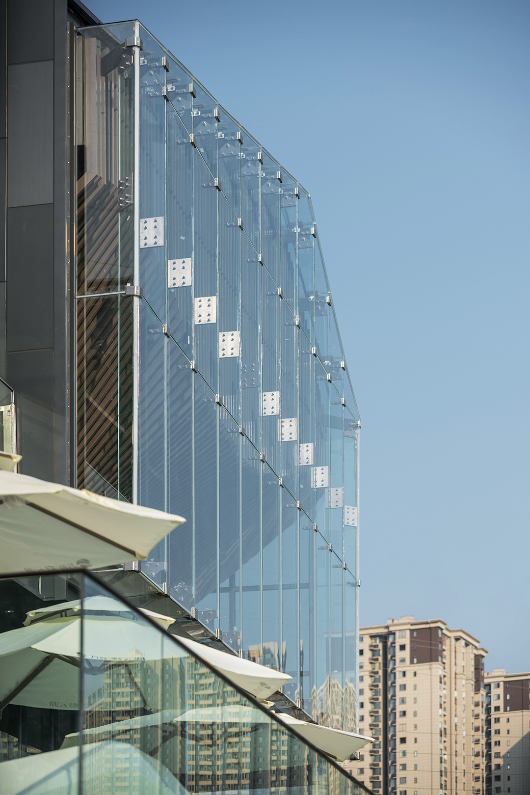 每一個局部在形式上塑成母題上的統(tǒng)一,在通透的超白玻璃后面,水的曲線,利用木格柵抽象的表達,它與整體是具有創(chuàng)造性的有機關(guān)系。