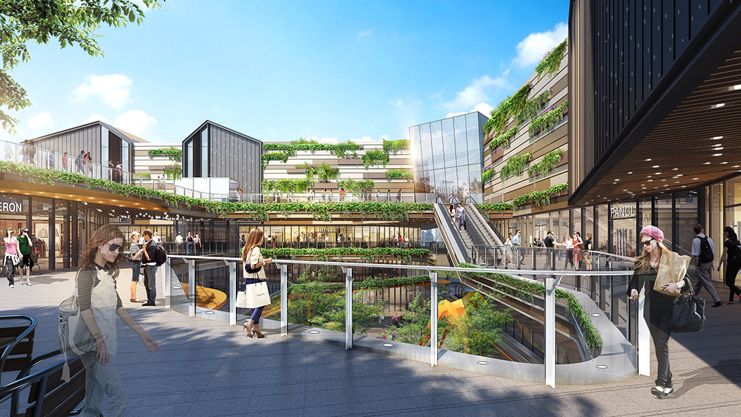 多入口在不同方向與層數(shù)都滲透融合,商業(yè)中段的入口廣場偏向流動性,采用連貫的景觀化綠植連廊,以及沿街豐富的梯臺綠化,生態(tài)的購物體驗油然而生。