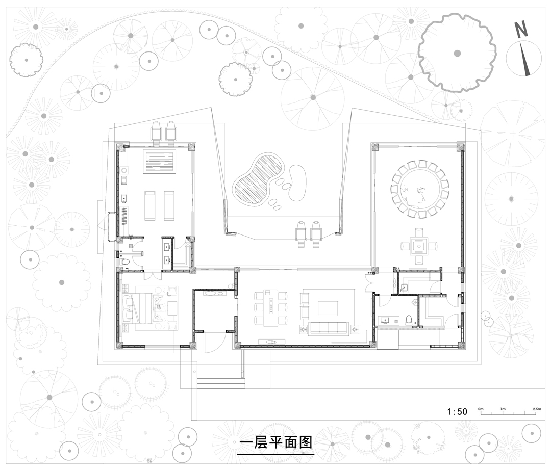 本案忽視外在裝飾,追求樸拙、自然、脫俗的意趣,對(duì)建筑的空間、形態(tài)、結(jié)構(gòu)、表皮等進(jìn)行“消隱”處理。從形式的表達(dá)到內(nèi)涵的表達(dá),詫寂之美不斷被賦予全新的解讀和詮釋。