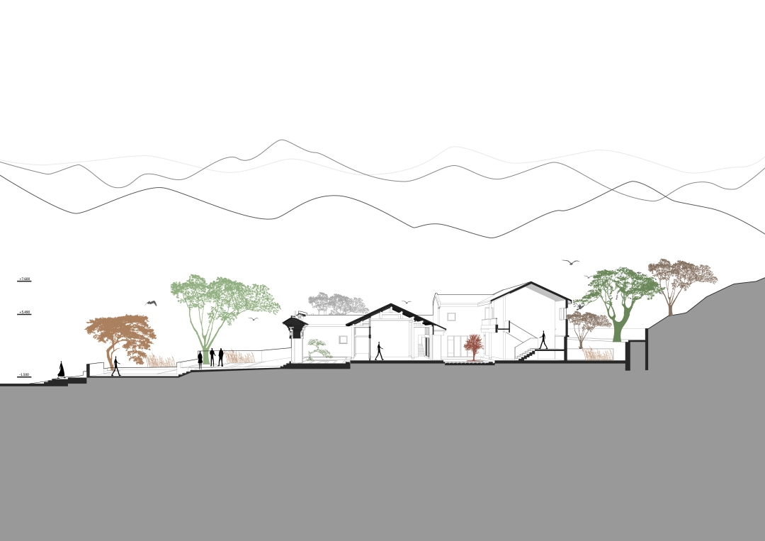 業(yè)主周先生在此渡過了童年的美好時(shí)光,兒時(shí)的點(diǎn)滴總會(huì)浮上心頭。設(shè)計(jì)充分尊重了他的情感記憶,以“自然營(yíng)造”為總體策略,不增加不屬于場(chǎng)所本身的體量或裝飾,盡量減少對(duì)自然環(huán)境和鄉(xiāng)民的生活影響。