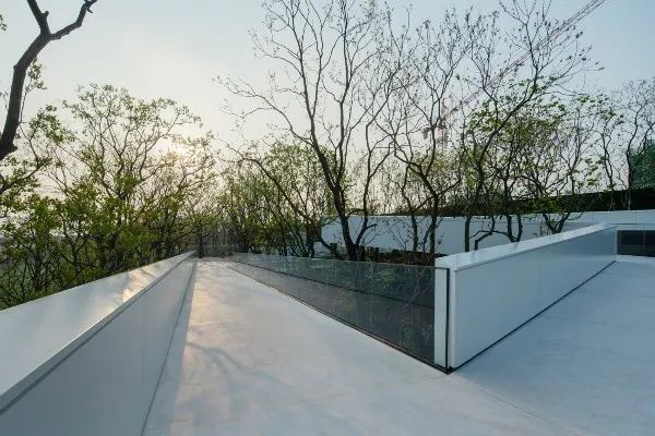 景觀連橋架于山坡之上,曲折蜿蜒,高低錯落與建筑統(tǒng)一融合。訪客在游走中,感受穿梭于樹梢上的野趣,運動將時間以它鮮活的流動狀態(tài)與空間連接,使他們能體驗到時空秩序感。