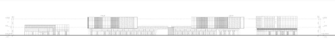 運(yùn)用簡(jiǎn)潔有力的手法切分出豎向與橫向肌理,大面積玻璃材質(zhì)的運(yùn)用,構(gòu)筑了觀景的通性透視野。以兩層為一個(gè)單元,中間采用梁后退幕墻體系制作,其余部分則利用土建結(jié)構(gòu)打斷,節(jié)省幕墻框料成本。