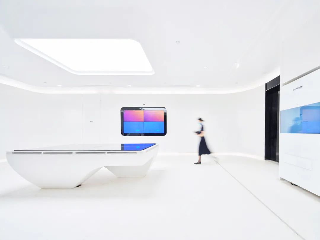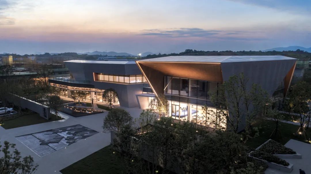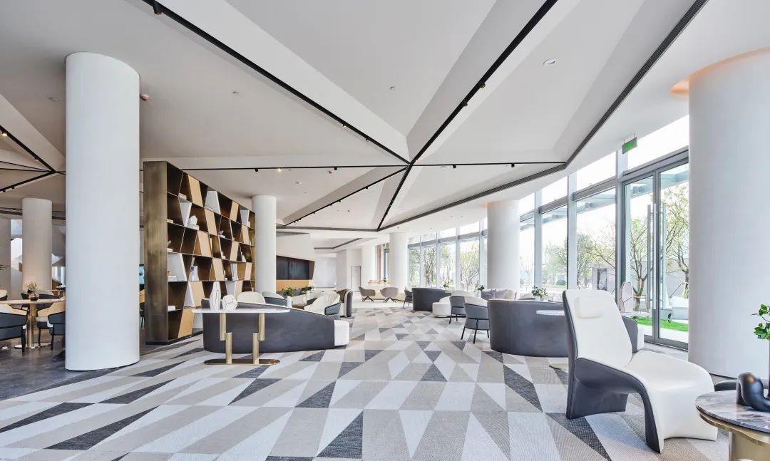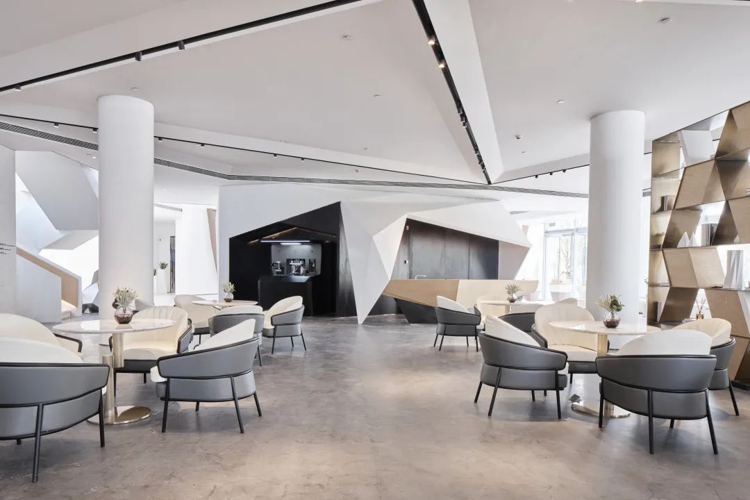 幾何轉(zhuǎn)折的玻璃面、不規(guī)則的折線旋梯,與建筑整體風(fēng)格相呼應(yīng)的同時,帶來藝術(shù)感和科技感完美結(jié)合的室內(nèi)空間。