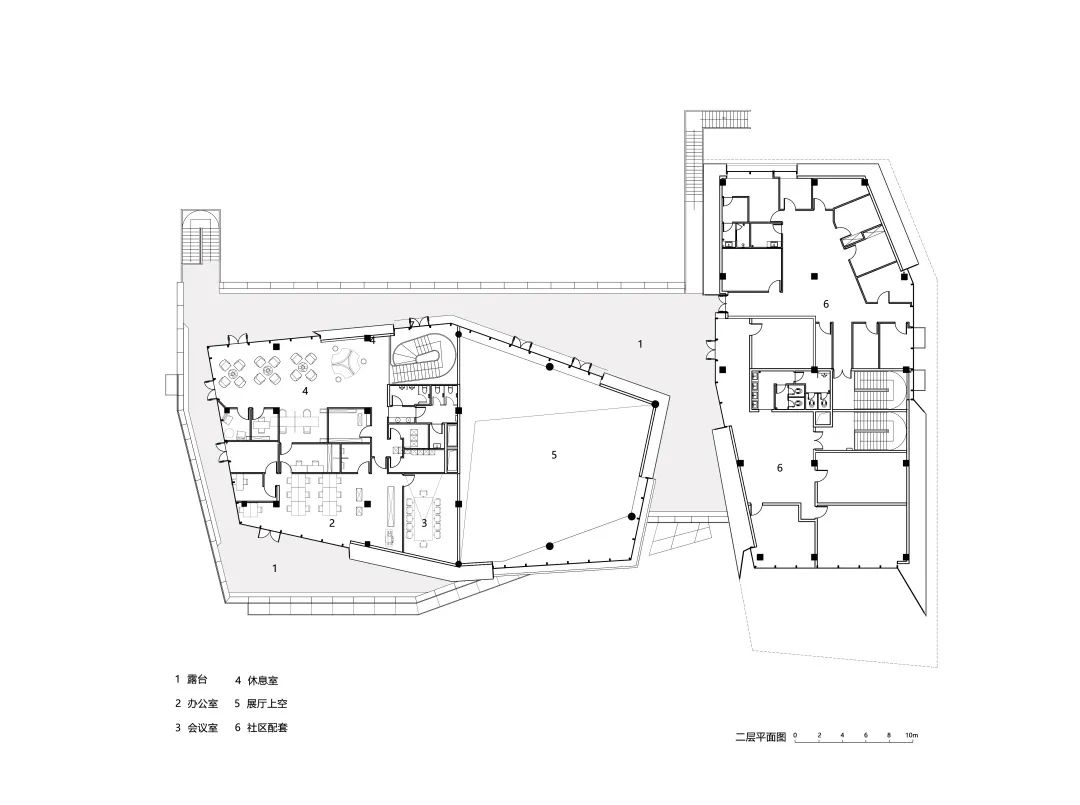 該建筑不光為來訪者提供了一個遠眺的景觀視角,同時還將來訪者的視線引入空間內(nèi)部,使他們足以觀測到微觀尺度的信息。