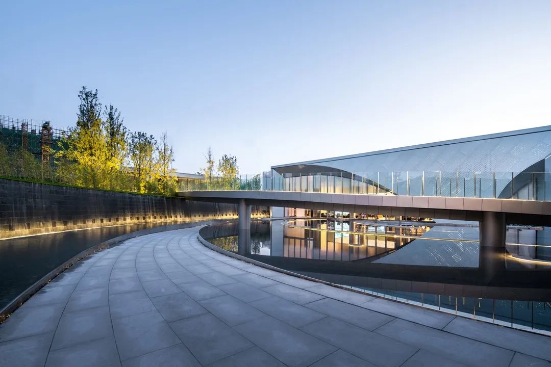 內(nèi)外一體:建筑猶如一個(gè)被交錯(cuò)廊橋包裹著的玻璃展品,形成城市道路邊獨(dú)特的視覺標(biāo)識(shí),展館內(nèi)的活動(dòng)也成為展示的一部分,吸引人們走進(jìn)場(chǎng)地,感受設(shè)計(jì)的敘事,瀏覽本身也成為展覽發(fā)生的一部分。