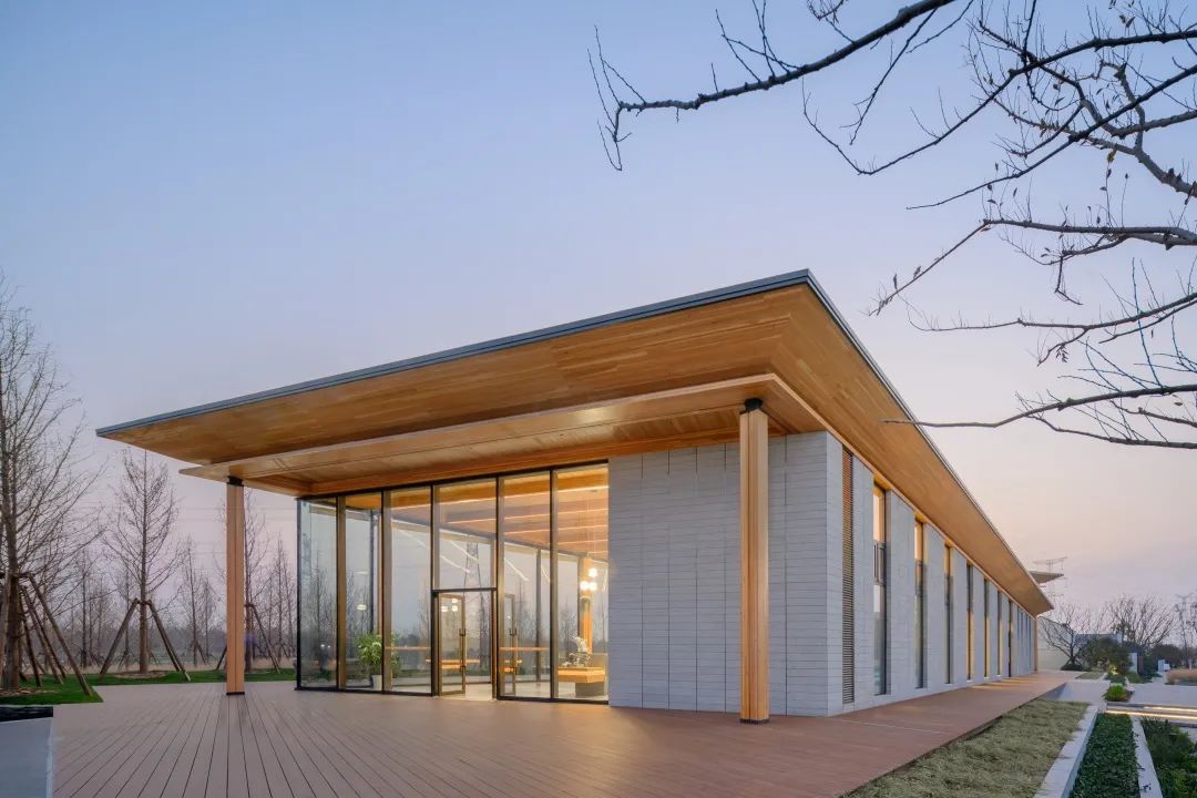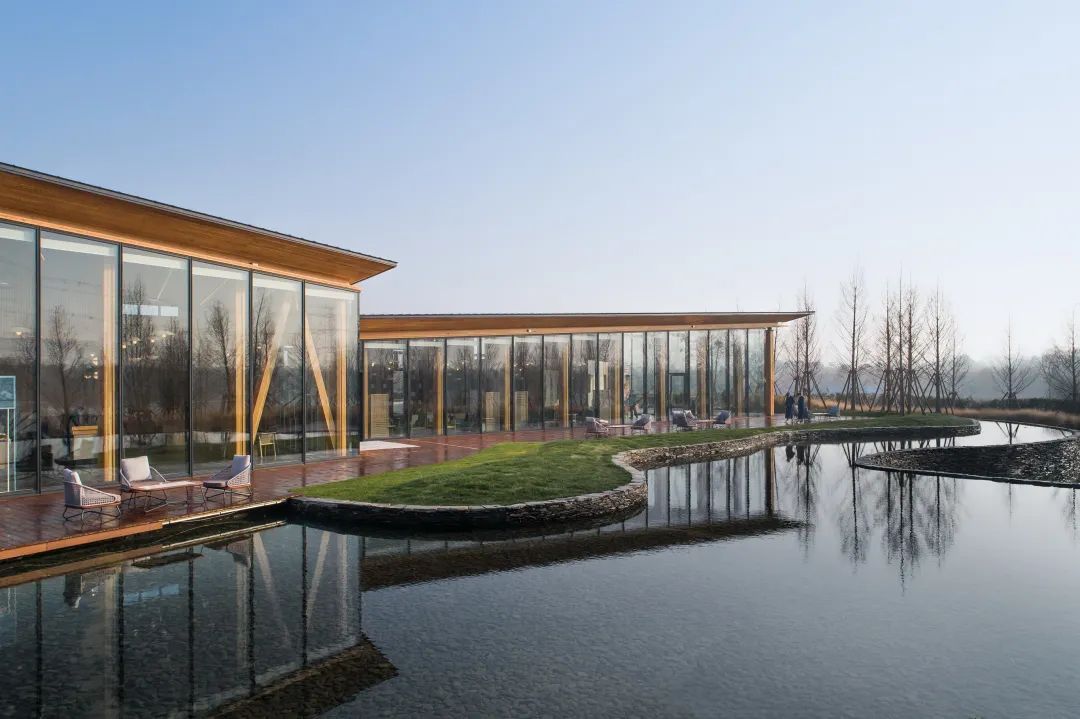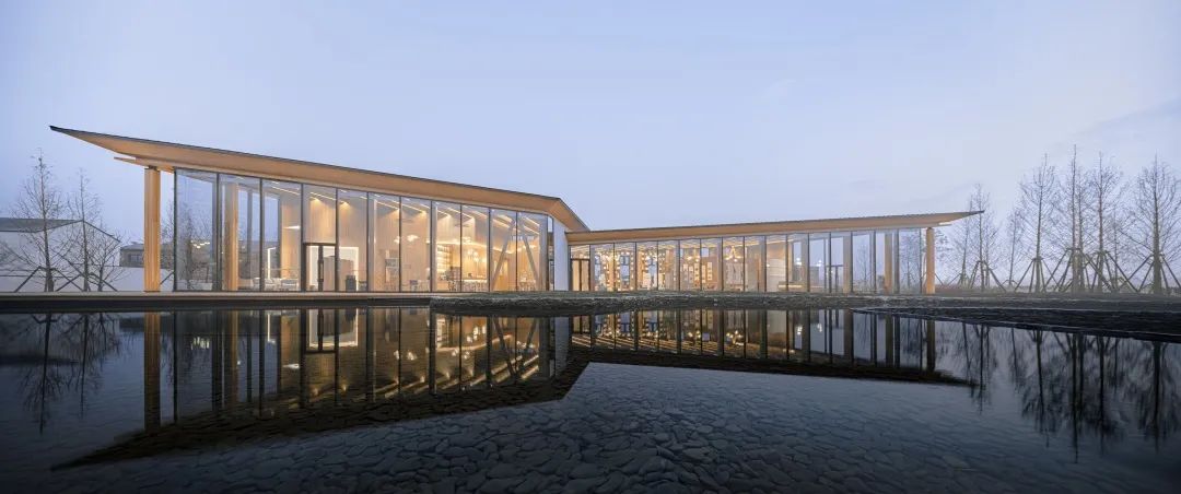 玻璃幕墻與木結(jié)構(gòu)坡屋頂是建筑的主要元素,它用輕巧的結(jié)構(gòu)定義了建筑的室內(nèi)特征,又在外部營造了極具識別性的形象。