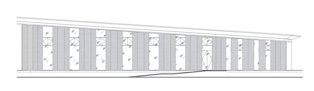 建筑最顯著的特點是利用向中央傾斜的屋頂,在從南到北的環(huán)境中繪制出可識別的標(biāo)志。