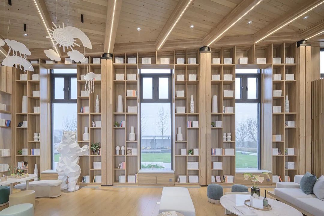 項目著重體現(xiàn)自然、田園、舒適的空間氛圍,重點詮釋木結(jié)構(gòu)空間完整性和體現(xiàn)木結(jié)構(gòu)梁柱的序列感,通過開敞的空間布局方式,營造出空間與建筑之間統(tǒng)一性,體現(xiàn)木結(jié)構(gòu)空間張力與自然美學(xué)氛圍。