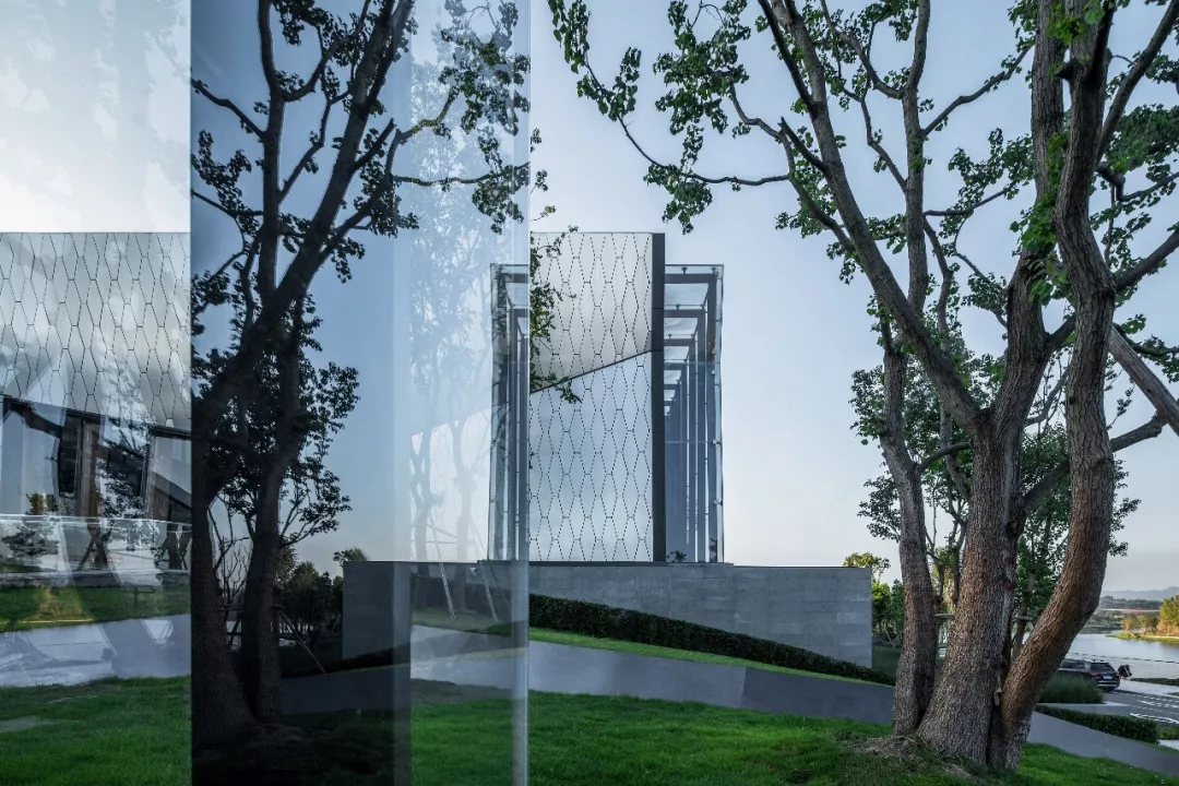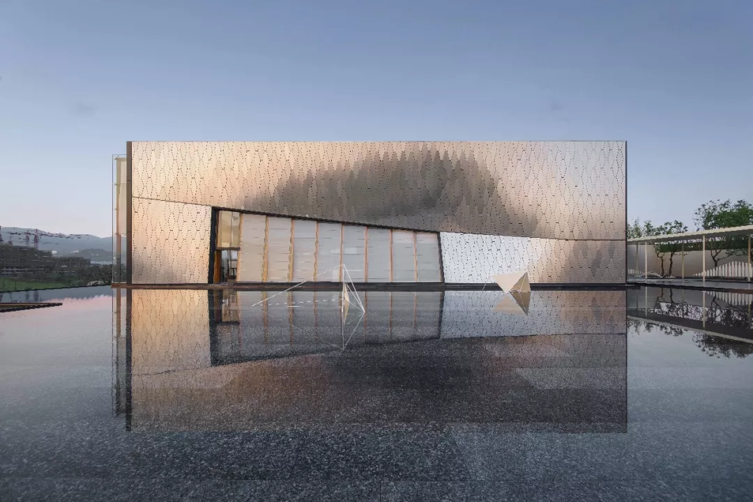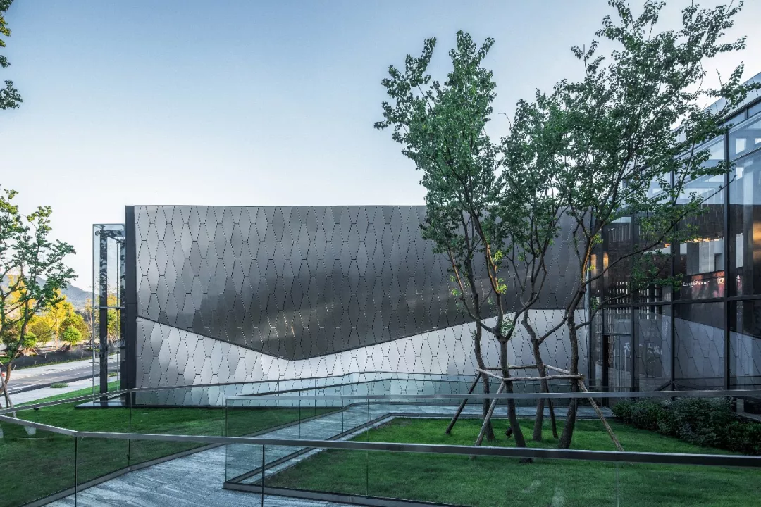 表皮由蜂窩狀基本單元構(gòu)成,每塊蜂窩鋁板精細包邊,開縫拼掛,細節(jié)考究,追隨自然光的變化產(chǎn)生復(fù)雜而神秘的視覺效果。這種虛幻感正契合“山上的圣殿”的設(shè)計意圖,居于云端,反射自然與天光,進而讓人感受到光影的時移與時間的流逝。