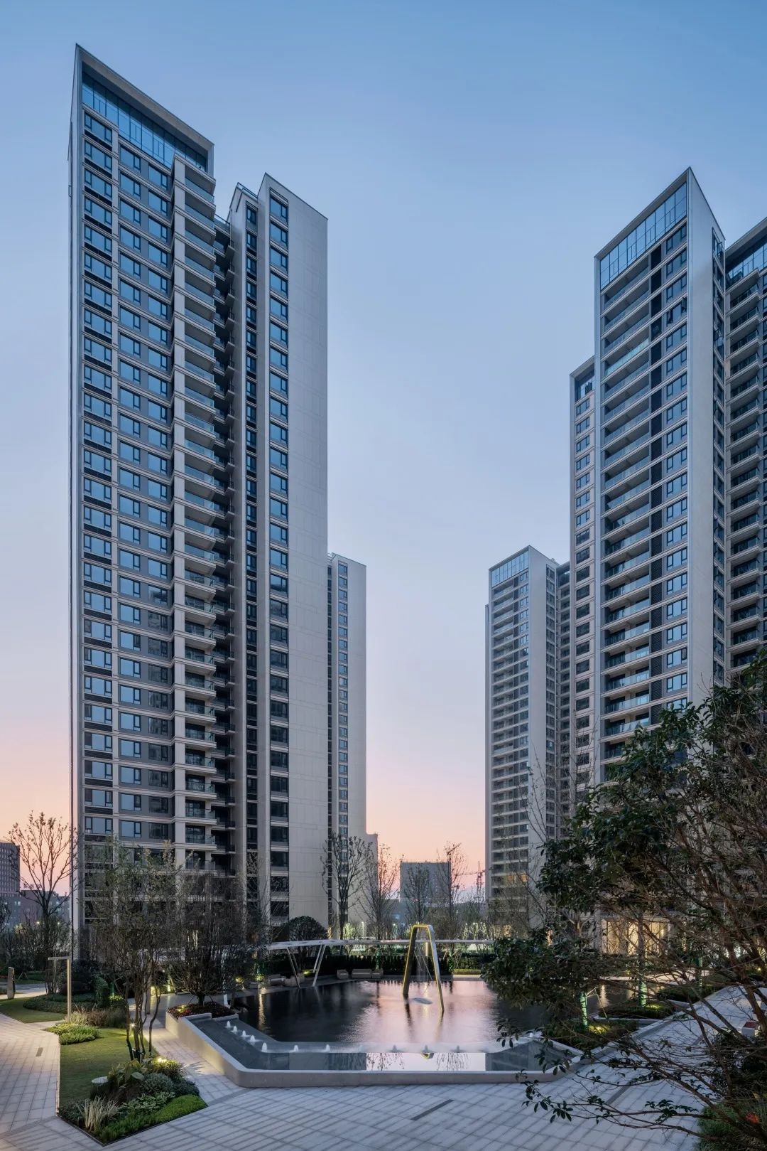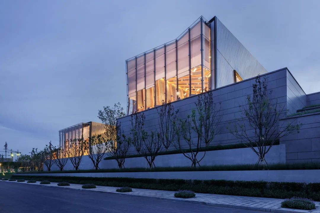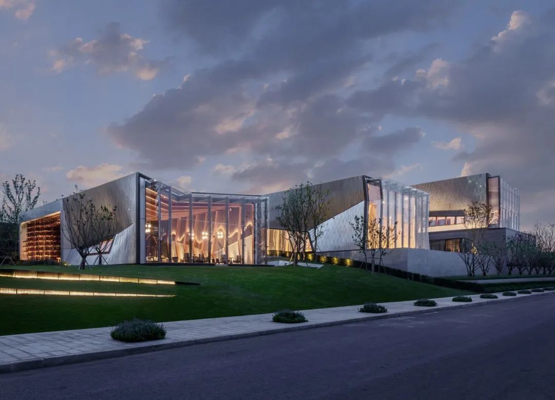 本案延續(xù)照母山肌理加以梳理,詮釋山水意境。在一環(huán)一帶中訴說悅?cè)慌c靈氣,隱士之居,呼之即出,秉承“三軸六庭”的空間序列感?!伴T-庭-院”的遞進布局,滲透古典園林建筑的“隱逸美學(xué)”。外立面設(shè)計上引用藏山納水的設(shè)計理念,形態(tài)上舍棄了傳統(tǒng)住宅的剛正形象,采用弧形立面設(shè)計,將山的剛毅,與水的柔和完美演繹,宛如生長在照母山上的植物一般,充滿生命力。