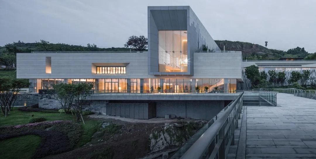 本案毗鄰重慶渝北區(qū)花石溝公園,基地位于小山坡上,設(shè)計師讓建筑與環(huán)境和平共處,并不試圖破壞或戰(zhàn)勝它們的直接背景。作為社區(qū)活動中心,希望人們不再仰視它,而是放低視角親自體驗它,這才是建筑的歸宿。